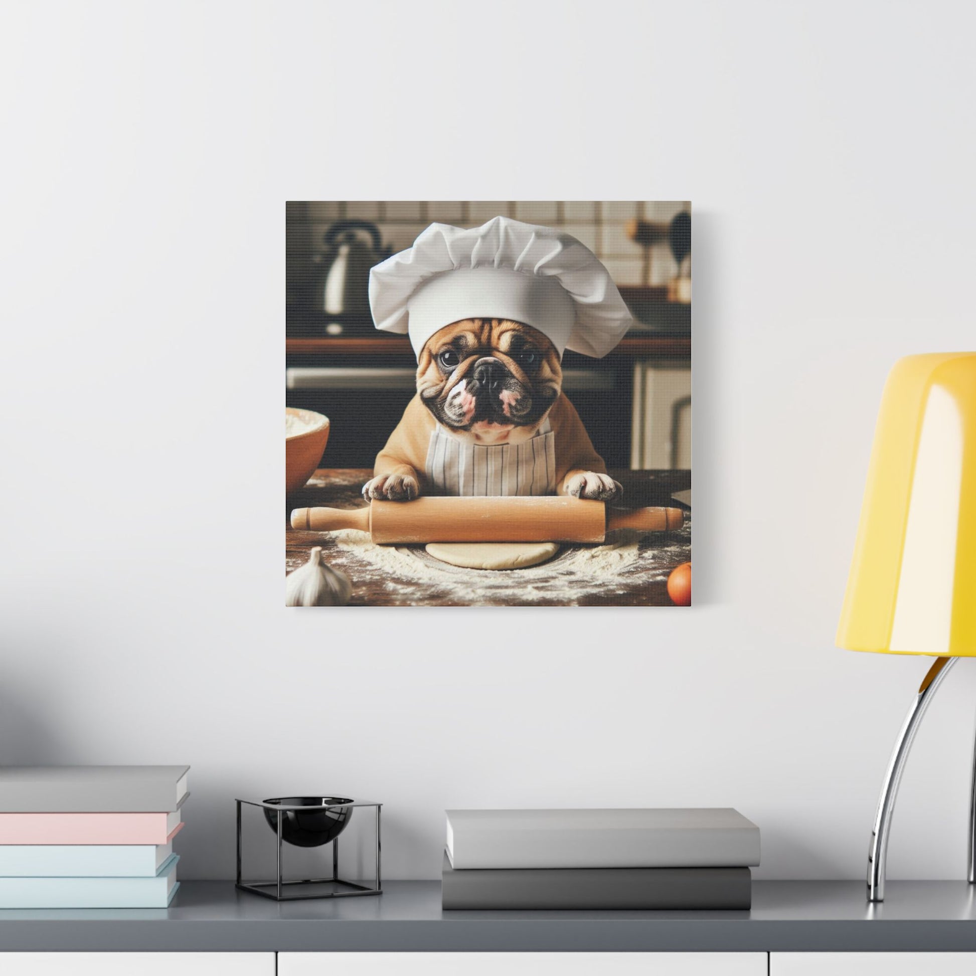 Bring some joy to your kitchen with this funny French bulldog canvas. The heartwarming design on our satin canvas are perfect for dog lovers looking to add a touch of humor and personality to their space. A great addition to your kitchen decor, especially for pet owners, or a perfect gift for someone who owns a French bulldog.